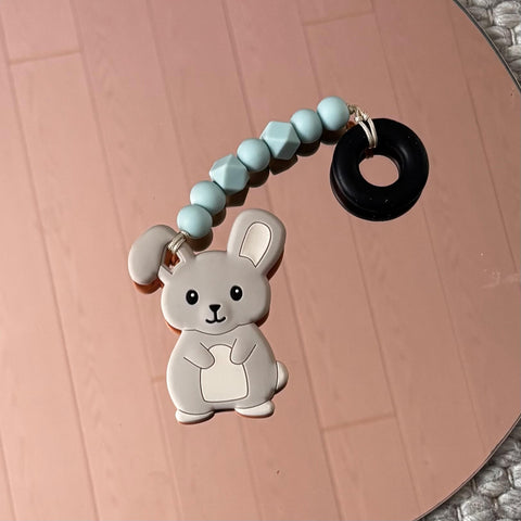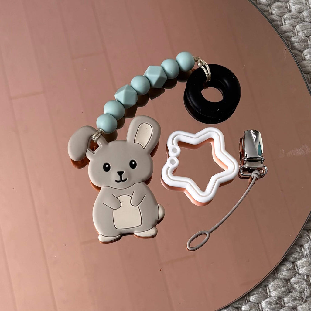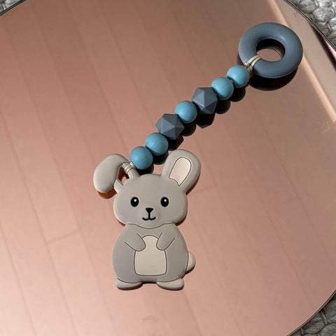 - Teether made of silicone beads and -bunny. Made of completely non-toxic grocery-quality silicone beads does not contain phthalates. BPA-free. Metallic, nickel-free clip.